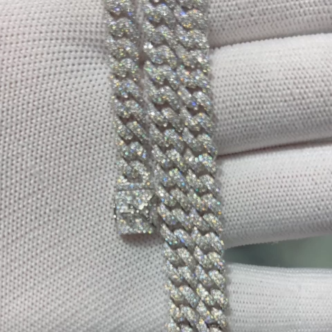Chaîne Cubaine à Pointes Glacée en Or Blanc 6mm/8mm Diamant Moissanite