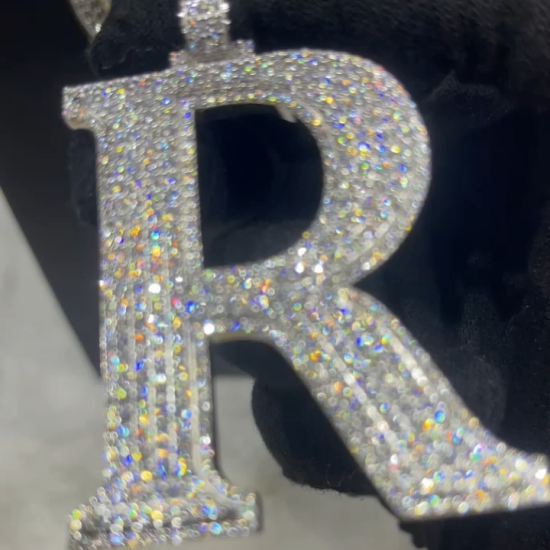 Pendentif 26 Lettres Diamant Moissanite en Or Blanc 2"