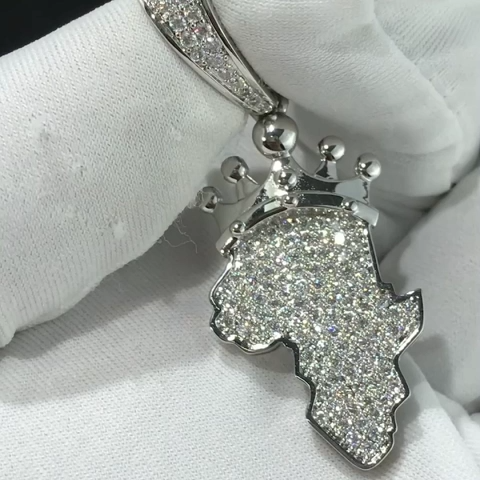 Pendentif Afrique Avec Diamants Moissanite En Or Blanc 1.5"