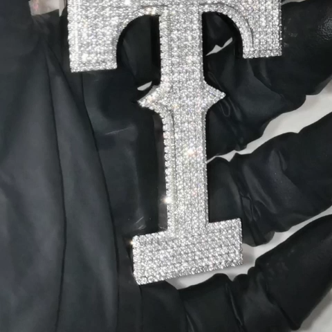 Pendentif Lettres Initiales Diamant Moissanite de "T" Or Blanc 2"